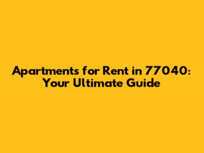 Apartments For Rent In 77040: Your Ultimate Guide