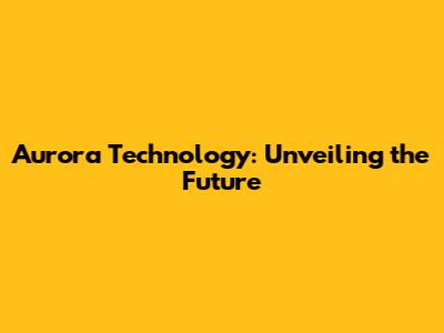 Aurora Technology: Unveiling The Future