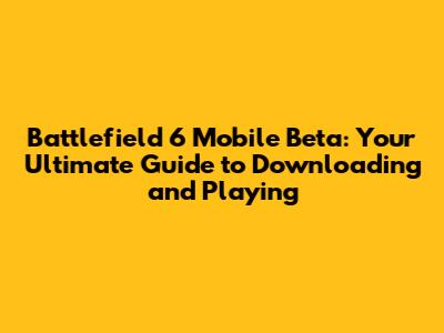 Battlefield 6 Mobile Beta: Download, Release Date & More