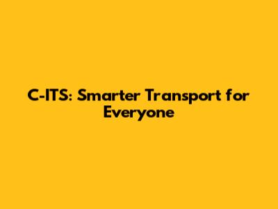 C-ITS: Smarter Transport For Everyone