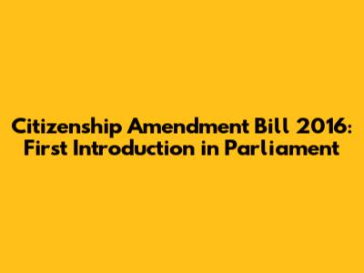 Citizenship Amendment Bill 2016: First Introduction