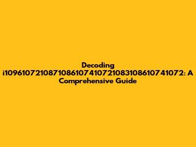 Decoding I1096107210871086107410721083108610741072: A Comprehensive Guide