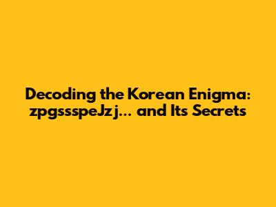 Decoding Korean: The Mystery Of ZpgssspeJzj...