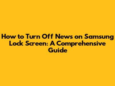 Disable News On Samsung Lock Screen: A Quick Guide