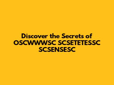 Discover The Secrets Of OSCWWWSC SCSETETESSC SCSENSESC