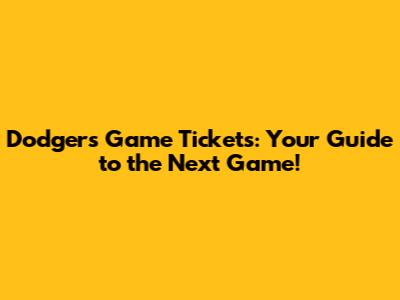 Dodgers Game Tickets: Your Guide To The Next Game!
