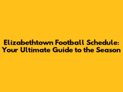 Understanding the Elizabethtown Football Schedule: Key Components