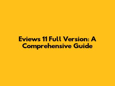 Eviews 11 Full Version: A Comprehensive Guide