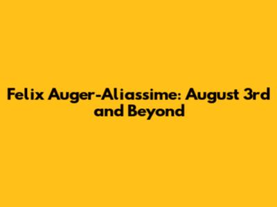 Felix Auger-Aliassime: August 3rd And Beyond