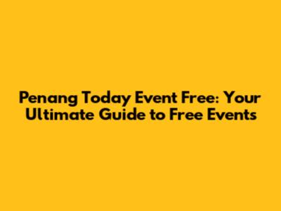 Free Events In Penang Today: Your Ultimate Guide