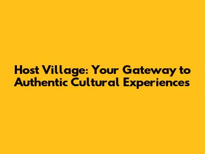 Host Village: Your Gateway To Authentic Cultural Experiences