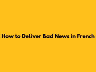 How To Deliver Bad News In French