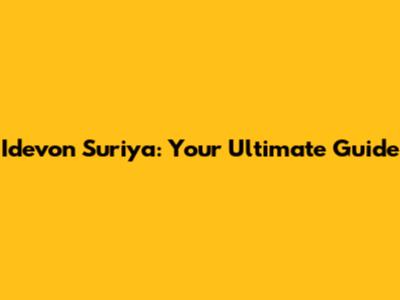 Idevon Suriya: A Comprehensive Guide