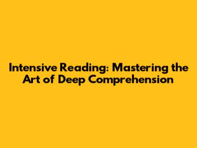 Intensive Reading: Mastering The Art Of Deep Comprehension