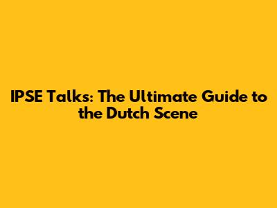 IPSE Talks: The Ultimate Guide To The Dutch Scene