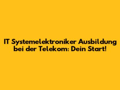 Die Ausbildung zum IT Systemelektroniker bei der Telekom ist eine super Chance für alle, die sich für Technik interessieren und einen zukunftssicheren Job suchen. Ihr lernt alles, was ihr für euren Beruf braucht, und habt die Möglichkeit, euch ständig weiterzuentwickeln. Die Telekom bietet euch eineTop-Ausbildung mit erfahrenen Ausbildern, modernster Technik und attraktiven Karriereperspektiven. Also, worauf wartet ihr noch? Bewerbt euch jetzt und startet eure Karriere in der IT-Branche!