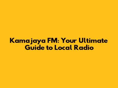Kamajaya FM: Your Ultimate Guide To Local Radio
