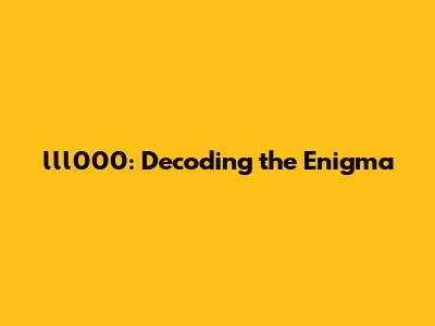 Deciphering the Mystery: Practical Approaches to Understanding lll000