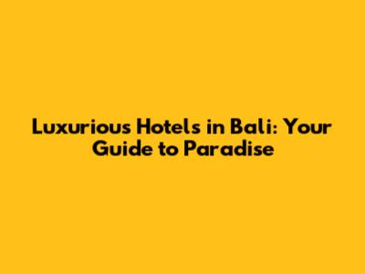 Top Luxurious Hotel Options in Bali