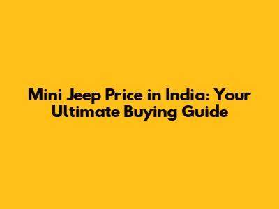 Mini Jeep Price In India: Your Ultimate Buying Guide