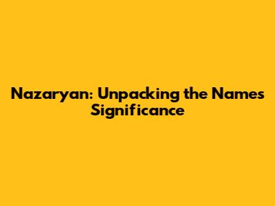 Hey everyone! Today, we're diving deep into a name that might sound familiar, or perhaps it's entirely new to you: Nazaryan. You might have heard it in passing, seen it on a sign, or even know someone with this surname. But what's the story behind it? Where does it come from, and what does it mean? Let's unpack the fascinating origins and implications of the Nazaryan surname. It’s more than just a collection of letters; it's a piece of history, a cultural marker, and for many, a significant part of their identity. We’ll explore its roots, its prevalence, and the cultural contexts that make this name so interesting. Get ready to discover the hidden layers of the Nazaryan name!