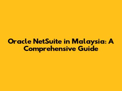 Oracle NetSuite In Malaysia: A Comprehensive Guide