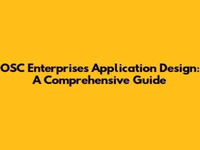 OSC Enterprises Application Design Guide