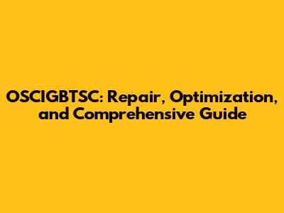 OSCIGBTSC: Repair, Optimization, And Comprehensive Guide