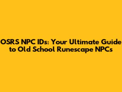 What are OSRS NPC IDs and Why Do They Matter?
