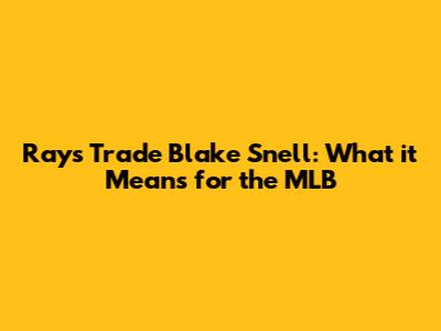 Alright baseball fans, let's dive into a deal that sent shockwaves through the MLB! The Tampa Bay Rays, known for their savvy moves and pitching prowess, decided to trade their ace, Blake Snell. This wasn't just any trade; it was a move that has significant implications for both the Rays and the San Diego Padres, not to mention the broader MLB landscape. So, what exactly happened, and why is everyone talking about it? Let's break it down.