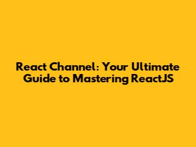 React Channel: Your Ultimate Guide To Mastering ReactJS