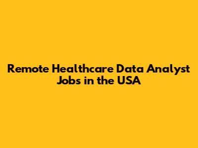 Remote Healthcare Data Analyst Jobs In The USA