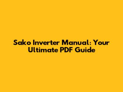 Sako Inverter Manual: Your Ultimate PDF Guide