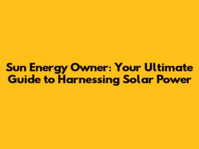 Sun Energy Owner: Your Ultimate Guide