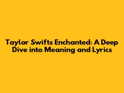 Taylor Swift's Enchanted: A Deep Dive