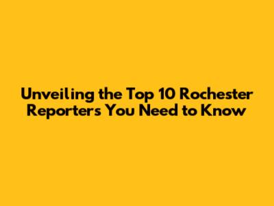 Unveiling the Top 10 Rochester Reporters You Need to Know