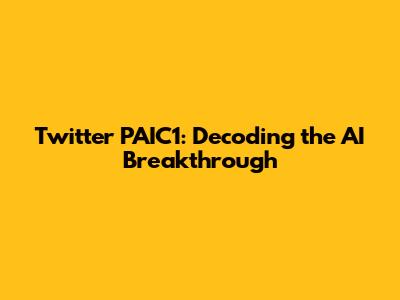 Twitter PAIC1: Decoding The AI Breakthrough