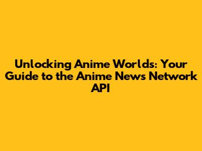 Unlocking Anime Worlds: Your Guide To The Anime News Network API