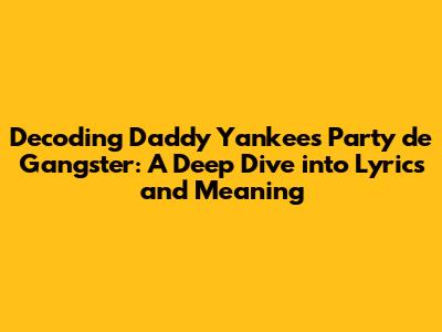 Hey music lovers! Ever found yourself vibing to a song and thinking, "Wait, what's this really about?" Well, today, we're diving deep into Daddy Yankee's 'Party de Gangster', a track that's more than just a catchy beat. We're going to break down the lyrics, explore the meaning, and uncover the story behind this iconic reggaeton anthem. So, grab your headphones, get comfy, and let's unravel the layers of 'Party de Gangster' together. This analysis is going to be super fun, so hang tight, amigos!