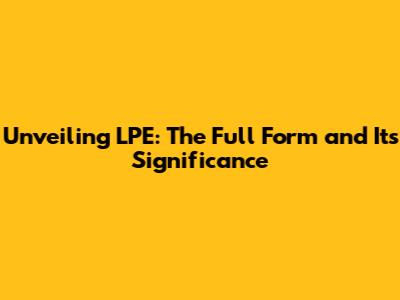 Unveiling LPE: The Full Form And Its Significance