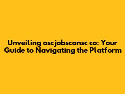 Unveiling Oscjobscansc Co: Your Guide To Navigating The Platform