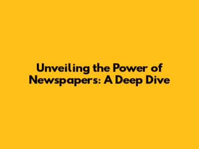 Unveiling The Power Of Newspapers: A Deep Dive