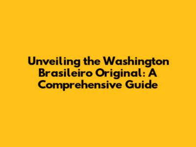 Unveiling The Washington Brasileiro Original: A Comprehensive Guide