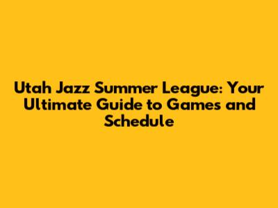 Utah Jazz Summer League Schedule: Dates, Times, and Locations