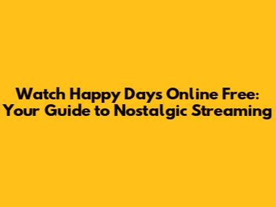 Watch Happy Days Online Free: Your Guide To Nostalgic Streaming