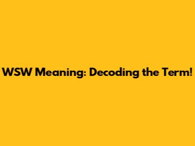 WSW Meaning: Decoding The Term!